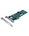 Low profile PCIe card with stereo Analog I/O, Phones out, AES/EBU I/O with SRC on input for Windows and Linux (Cable not included)